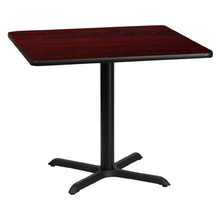 The Flash Furniture XU-MAHTB-3636-T3030-GG Table offers a perfect blend of style and functionality with its square design measuring 36"W x 36"D x 31-1/8"H, making it an ideal choice for dining height setups. Crafted with precision, this table features a 1-1/8" thick MDF surface with a melamine core, providing durability and resilience for various commercial applications. The mahogany laminate finish adds a touch of sophistication, while the black PVC T-mold edge enhances its sleek appearance. Its robust construction includes a pre-welded top plate and a sturdy 30" x 30" x-base, supported by a 3" diameter cast iron column finished with a black powder coating for long-lasting wear. Designed for commercial use, this table requires assembly and is shipped in three boxes, ensuring convenience and ease of setup. Ideal for a range of industry segments, from bustling cafes to elegant dining establishments, the Flash Furniture XU-MAHTB-3636-T3030-GG Table is in stock and typically ships within 24 hours, making it a reliable and timely addition to your commercial space.