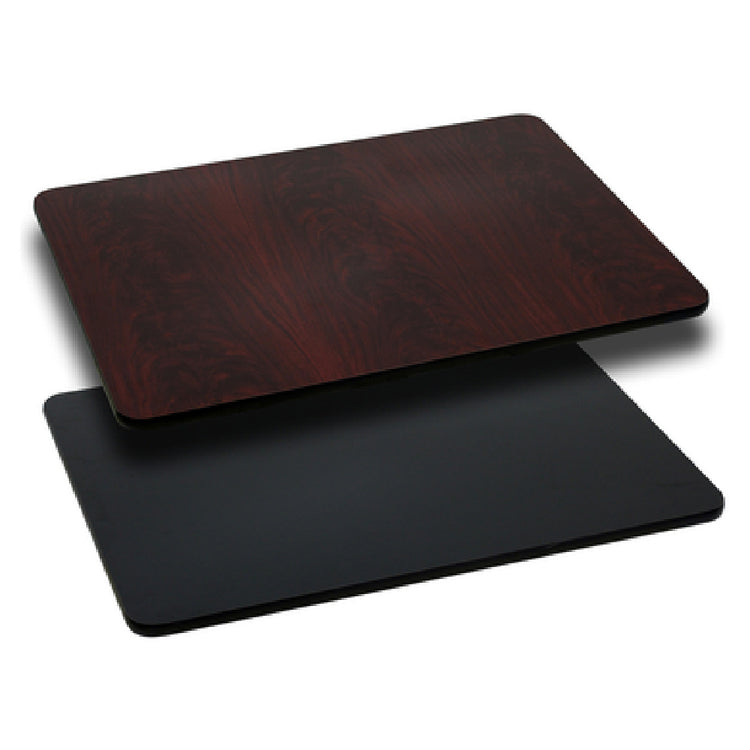 Flash Furniture XU-MBT-2430-GG Table Top Rectangular 30"W X 24"D is a versatile and durable solution designed for commercial use, featuring a unique reversible design that offers two laminate finishes in one product - black on one side and mahogany on the other. Measuring 30 inches in width and 24 inches in depth, this table top is constructed with a 1-1/8 inch thick high-impact melamine core, ensuring longevity and resilience in high-traffic environments. The black T-mold edge provides additional protection against daily wear and tear, enhancing its durability. This product is suitable for various commercial settings, from bustling restaurants to dynamic office spaces, thanks to its adaptable aesthetics and sturdy construction. The innovative reversible design allows businesses to effortlessly switch between a modern black or a classic mahogany look, catering to diverse interior design preferences. Moreover, the Flash Furniture XU-MBT-2430-GG table top is designed with practicality in mind, as all in-stock items are ready to ship within 24 hours, ensuring swift and efficient delivery. This combination of adaptable style, robust build quality, and quick availability makes it a highly practical choice for businesses seeking reliable and flexible furnishing solutions.
