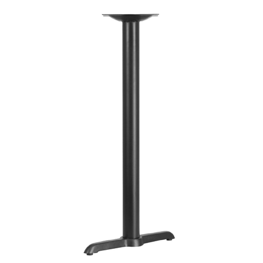 The Flash Furniture XU-T0522-BAR-GG Table Base 22"x 5" x 42"H Bar Height is a robust and versatile table base designed for commercial use in various settings such as restaurants, bars, and cafes. This table base features a T-base design with a 3" diameter column, providing stability and support for larger rectangular table tops, specifically those measuring 42"W x 30"D and beyond. Crafted from durable cast iron, the base is finished with a black powder coating, ensuring long-lasting durability and a sleek appearance. The pre-welded top plate simplifies assembly, while the overall height of 42 inches places it at an ideal bar height, making it a suitable choice for high-top seating arrangements. Shipped in two boxes and requiring assembly, this table base is usually available for shipment within 24 hours of order placement, ensuring a quick turnaround for businesses needing to furnish their spaces efficiently. Its robust construction and adaptable design make it a valuable addition to any commercial environment, offering a solid foundation for various tabletop configurations while maintaining a professional aesthetic.