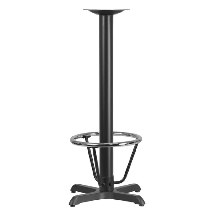Flash Furniture XU-T2222-BAR-3CFR-GG Table Base 22" X 22" X 42"H Bar Height is a meticulously engineered product designed for commercial use, offering versatile support for various table tops. Featuring an x-base with dimensions of 22 inches by 22 inches, this table base ensures stability and balance, making it suitable for diverse dining environments such as restaurants, cafes, and bars. The 42-inch height accommodates bar settings comfortably. Its 3-inch diameter column provides robust support, while the 16-inch diameter chrome foot ring adds both style and functionality, allowing for comfortable foot placement. Constructed from durable cast iron with a powder-coated black finish, it achieves a professional aesthetic that withstands the rigors of high-traffic environments. This base is compatible with round or square table tops measuring between 24 inches and 30 inches, providing flexibility for various design preferences. The pre-welded top plate enhances ease of assembly, though some assembly is required, with the product conveniently shipped in three boxes. Typically in stock, this item is often ready for shipment within 24 hours. Flash Furniture's offering combines durability, style, and practicality, catering to the specific needs of commercial furniture solutions.