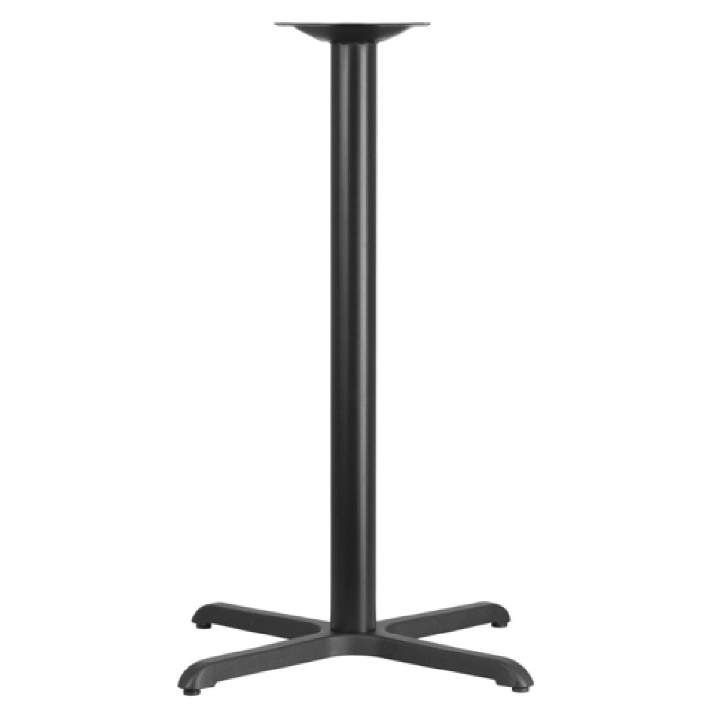 The Flash Furniture XU-T3030-BAR-GG Table Base is a versatile and sturdy foundation, specifically designed for commercial use with a focus on durability and functionality. Standing at a bar height of 42 inches, this table base carries a robust presence with its 30-inch by 30-inch x-base design. The 3-inch diameter column provides enhanced stability, while the pre-welded top plate ensures easy assembly and support for various tabletop sizes, fitting both 24-inch to 36-inch round or square tops seamlessly. Crafted from cast iron, the base offers a substantial weight and resilience, with a powder-coated finish that delivers a sleek black appearance, complementing various commercial aesthetics. This table base is shipped in two boxes and requires assembly upon receipt, with stock items typically dispatched within 24 hours, ensuring quick delivery for bustling businesses. Its adaptable design is ideal for a range of settings, from restaurants and bars to cafés, offering a reliable and aesthetically pleasing solution for establishments seeking both functionality and style in their furniture choices.