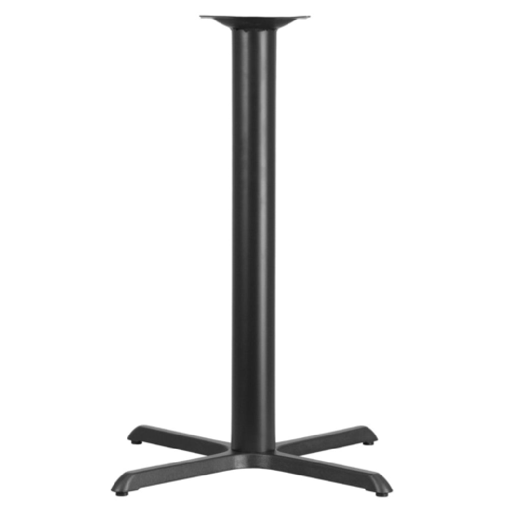 Flash Furniture XU-T3333-BAR-GG Table Base 33" X 33" X 42"H Bar Height is a robust and versatile table base, expertly designed for commercial use. This table base features a sturdy x-base and a 4" diameter column, ensuring exceptional stability and durability for any bustling bar or restaurant setting. The pre-welded top plate allows for a seamless fit with table tops ranging from 24" to 36" in both round and square shapes, providing flexibility and adaptability to various dining environments. Constructed from durable cast iron and finished with a sleek black powder coating, this table base combines functionality with style. Standing at a bar height of 42 inches, it is ideal for establishments looking to create an inviting bar area or elevated dining experience. Assembly is required, and the product is conveniently shipped in two boxes, with in-stock items typically dispatched within 24 hours. The Flash Furniture XU-T3333-BAR-GG Table Base is a practical choice for those in the hospitality industry, offering a blend of durability, versatility, and contemporary design to meet diverse commercial needs.