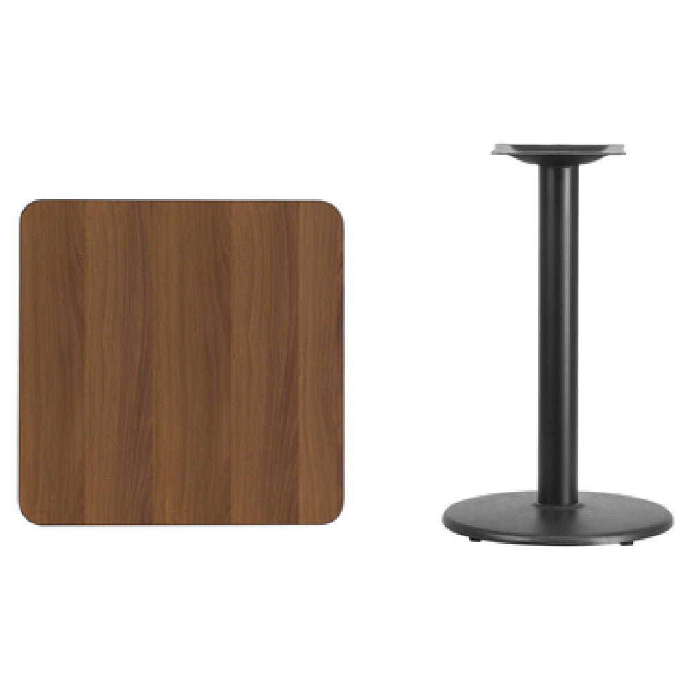 Flash Furniture XU-WALTB-2424-TR18-GG Table 24"W X 24"D X 31-1/8"H Dining Height is a meticulously designed piece tailored for diverse commercial environments, seamlessly blending functionality with style. This square table has a 24-inch width and depth and stands at a dining height of 31-1/8 inches, making it a perfect choice for a variety of dining spaces from cafes to restaurants. Constructed with a 1-1/8-inch thick MDF featuring a melamine core, it promises durability and resilience. The walnut laminate finish adds a touch of elegance, complemented by a black PVC T-mold edge that enhances its durability. The table is supported by a robust 18-inch diameter base and a 3-inch diameter cast iron column, finished with a black powder coat for a sleek, modern look. Designed with a pre-welded top plate, this piece ensures stability and ease of assembly, catering to high-traffic commercial settings. Shipped in three boxes, it guarantees convenient handling and quick dispatch within 24 hours for in-stock items. This table is a strategic investment for businesses seeking a reliable and stylish dining solution that aligns with their operational needs and aesthetic preferences.
