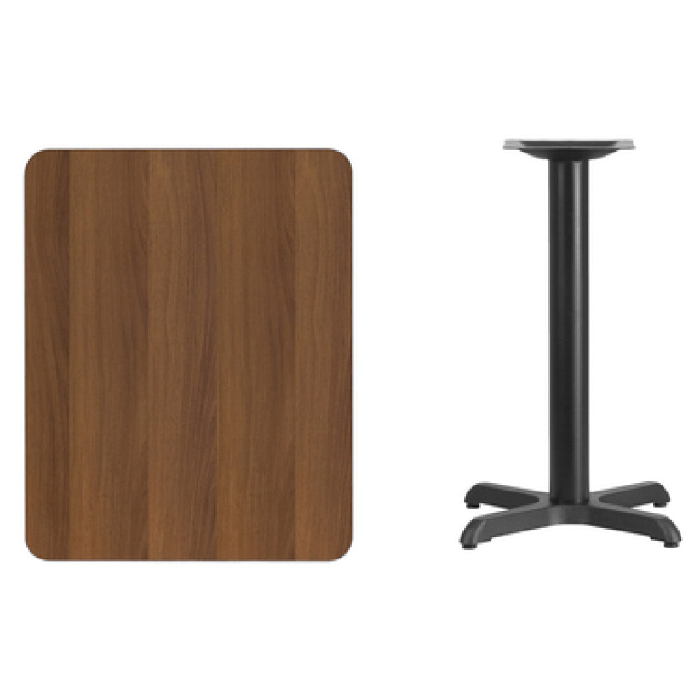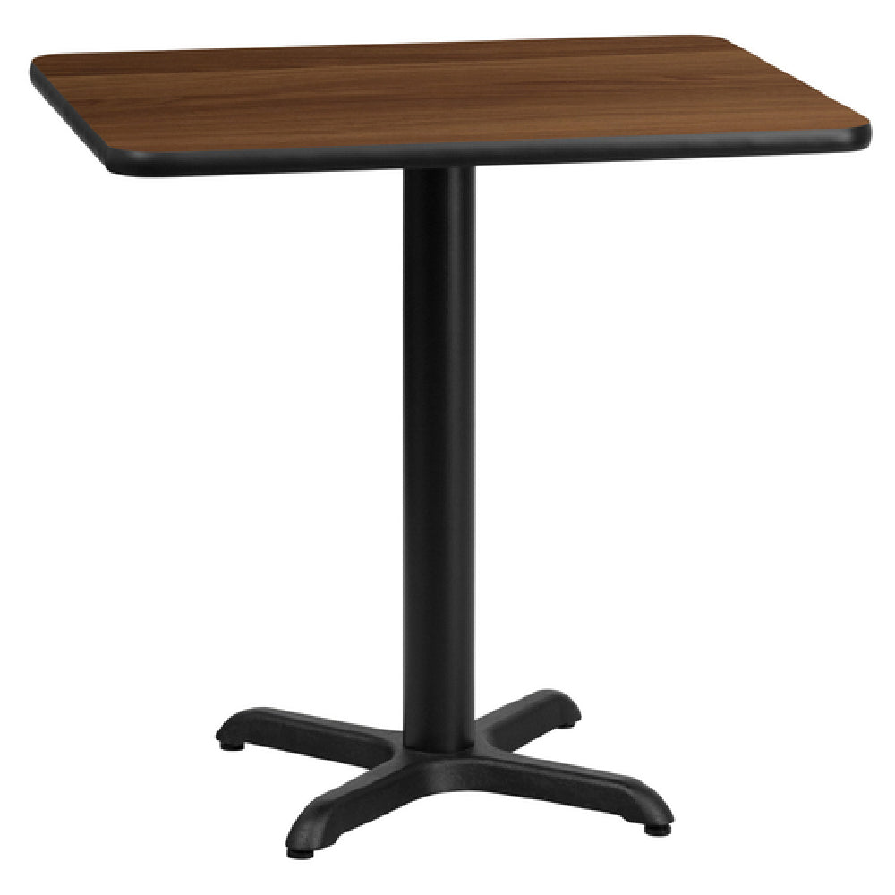 The Flash Furniture XU-WALTB-2430-T2222-GG Table 30"W X 24"D X 31-1/8"H Dining Height is a versatile piece designed for various commercial settings. This rectangular dining table features a durable 1-1/8" thick MDF with a melamine core, complemented by a rich walnut laminate finish, offering both elegance and resilience. The table's edges are safeguarded with a black PVC T-mold, ensuring long-lasting protection against wear. Supporting the tabletop is a robust pre-welded top plate and a sturdy 22" x 22" x-base, anchored by a 3" diameter cast iron column. The black powder coated finish on the column provides a sleek, modern aesthetic while enhancing durability. This table is shipped in three boxes and requires assembly, making it a convenient choice for businesses seeking efficient furniture solutions. Typically shipped within 24 hours when in stock, it assures quick delivery for urgent needs. The Flash Furniture XU-WALTB-2430-T2222-GG Table is designed to withstand the demands of commercial environments, making it an ideal choice for restaurants, cafes, and dining areas looking to blend functionality with style.