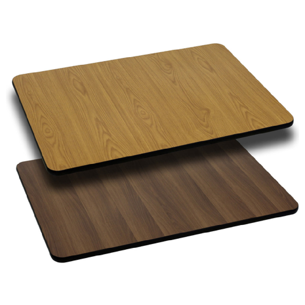 The Flash Furniture XU-WNT-3060-GG Table Top Rectangular 60"W X 30"D is a versatile and practical solution for commercial settings, distinguished by its dual-sided design and robust construction. This table top measures 60 inches in width and 30 inches in depth, with a thickness of 1-1/8 inches, ensuring a sturdy and reliable surface for various applications. The innovative reversible feature offers two distinct aesthetic options: a natural laminate on one side and a walnut laminate on the other, providing flexibility in design and décor matching. The edges are adorned with a black T-mold, offering added durability and a sleek finish. At its core, the table top is constructed with high-impact melamine, ensuring resilience and longevity in demanding environments. Specifically crafted for commercial use, this table top is ideal for office spaces, restaurants, or any professional setting requiring reliable and stylish furniture solutions. Moreover, in-stock items are capable of shipping within 24 hours, ensuring prompt delivery for urgent projects. The Flash Furniture XU-WNT-3060-GG Table Top combines functionality, durability, and aesthetic versatility, making it a valuable asset for businesses seeking quality and efficiency in their furniture selections.