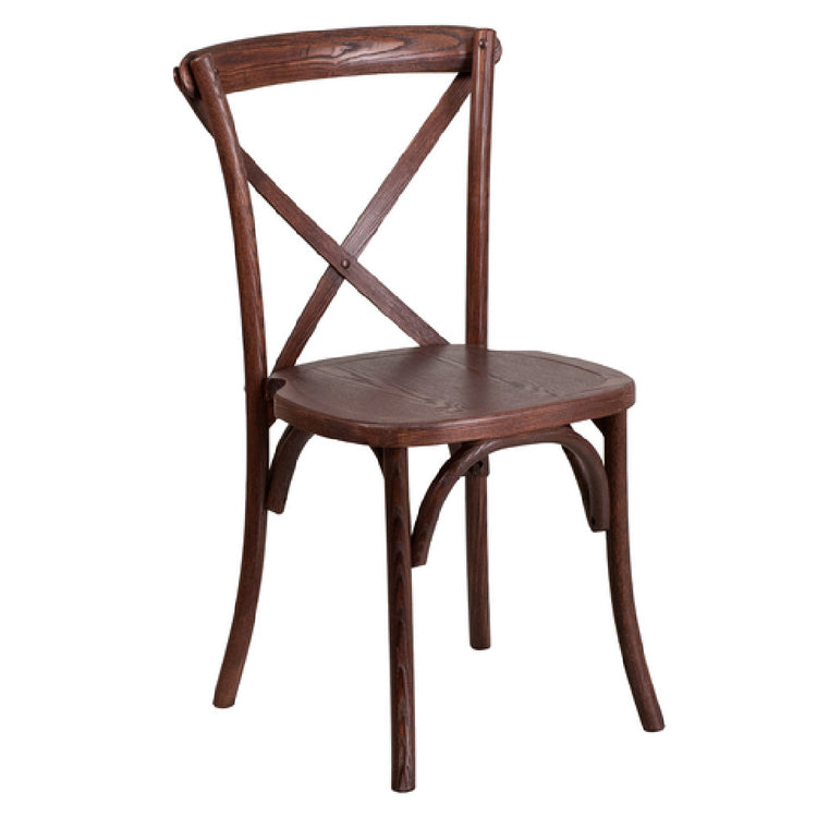 The Flash Furniture XU-X-MAH-GG Hercules Series Stackable Chair - 400 lb. capacity - cross back is a highly durable seating solution designed for both commercial and residential environments. Constructed with an ash wood seat and frame, this chair features a sophisticated mahogany finish that adds an elegant touch to any setting. The chair's robust design ensures a weight capacity of 400 lb., making it suitable for a wide range of users. Its stackable nature allows for efficient storage, accommodating up to 8 chairs in a single stack, optimizing space in venues such as restaurants, banquet halls, or home dining areas. To protect flooring surfaces, the chair is equipped with protective plastic floor glides, reducing the risk of scratches or damage. This model is delivered fully assembled, providing convenience right out of the box. Additionally, in-stock items are typically shipped within 24 hours, ensuring quick receipt for urgent seating needs. The Flash Furniture XU-X-MAH-GG chair stands out with its blend of strength, style, and practicality, making it a versatile choice for various market segments seeking reliable and aesthetically pleasing seating options.