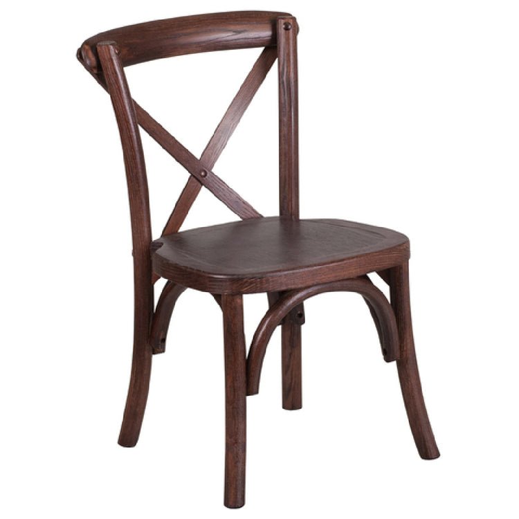 The Flash Furniture XU-X-MAH-KID-GG Hercules Series Kid's Size Stackable Chair is a versatile seating solution designed for both commercial and residential environments, catering to the unique needs of young users. With a robust 200 lb. capacity, this chair is engineered to accommodate various activities and settings, ensuring safety and durability. The chair features a cross back design and is constructed from high-quality ash wood, offering a sturdy frame and seat that are finished in an elegant mahogany. Its protective plastic floor glides reduce wear and tear on floors, making it suitable for diverse surfaces. Notably, the chair's stackable design allows it to be efficiently stored up to 8 chairs high, optimizing space in classrooms, play areas, and event spaces. This product ships fully assembled, emphasizing convenience for end-users, and in-stock items typically ship within 24 hours. The combination of strength, style, and practicality makes the Flash Furniture Hercules Series chair a valuable asset for any environment where children's seating is required, blending seamlessly with various interior decors while providing functional support.