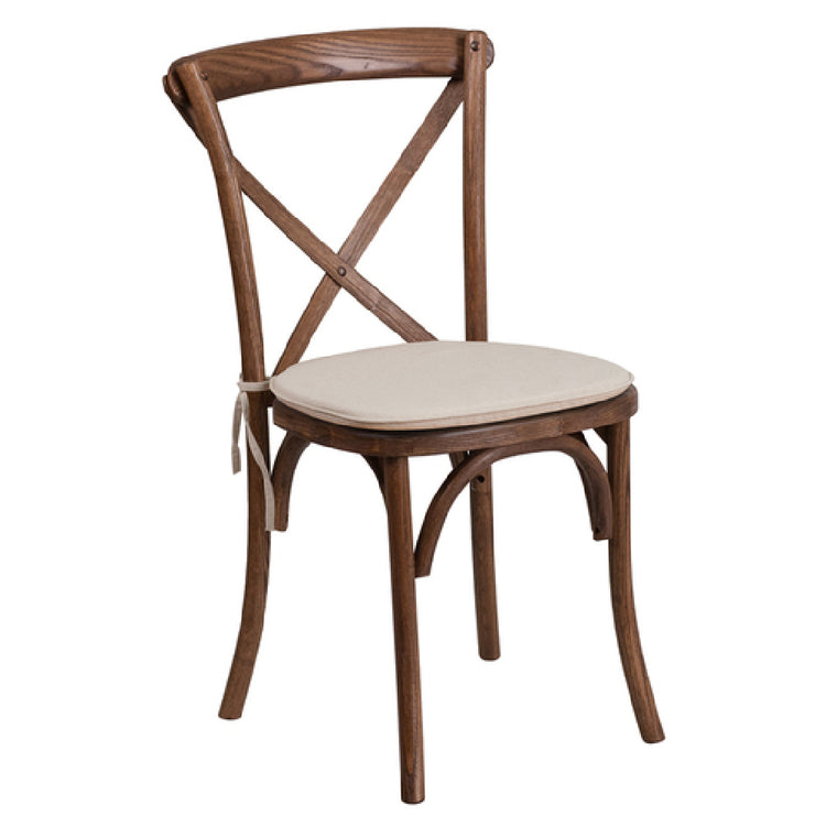 The Flash Furniture XU-X-PEC-NTC-GG Hercules Series Stackable Chair 400 Lb. Capacity is a versatile seating solution designed to cater to both commercial and residential settings. With a robust weight capacity of 400 lbs, this chair ensures durability and reliability for a wide range of users. Its cross back design, complemented by a pecan finish, combines aesthetics with structural integrity. The chair features a 1-inch thick natural cushion, enhancing comfort while maintaining a sleek profile. Constructed with an ash wood seat and frame, it offers a classic look that integrates well with various interior designs. Protective plastic floor glides are included to safeguard flooring surfaces from scratches and scuffs, making it an ideal choice for venues that require frequent rearrangement of seating. The stackable design, allowing up to 8 chairs to be stacked high, optimizes storage efficiency and is practical for spaces with fluctuating seating needs. Shipping fully assembled and typically within 24 hours for in-stock items, this chair provides immediate usability upon delivery. The Flash Furniture XU-X-PEC-NTC-GG chair is a practical and stylish choice for environments demanding both functionality and an attractive visual appeal.