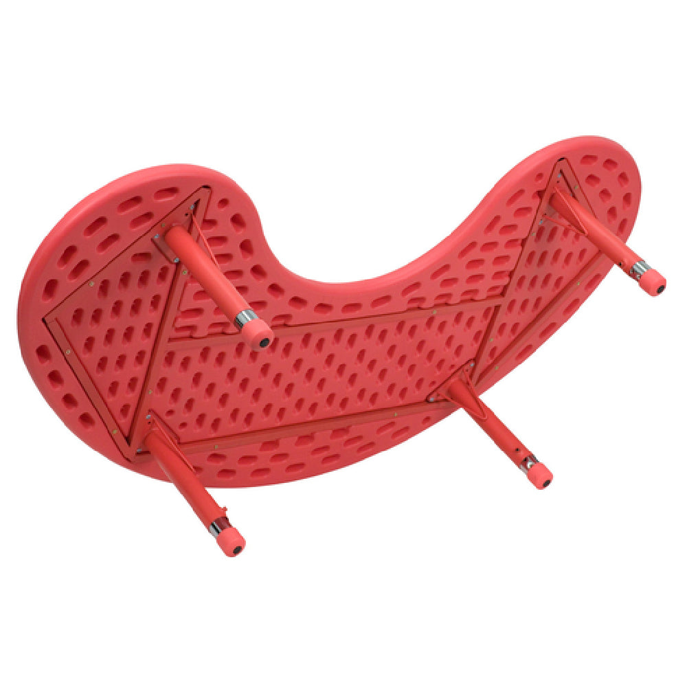 The Flash Furniture YU-YCX-004-2-MOON-TBL-RED-GG Preschool Activity Table is a versatile and functional furniture piece designed to cater to the dynamic needs of educational environments. This table features an expansive 65"W x 35"D half-moon shape, providing ample workspace for up to 8 children or 6 children and 1 adult, making it ideal for collaborative activities in preschools and daycare centers. The table's adjustable height ranges from 14-1/2" to 23-3/4", allowing it to accommodate school chairs with heights of 6-1/2" to 14"H, thus offering flexibility for varying age groups. With a robust static load capacity of 220 lb., it ensures durability and safety in bustling classroom settings. The plastic top is complemented by safety-rounded corners, minimizing the risk of injuries during energetic activities. Extending steel legs add to the table's stability and longevity. The vibrant red finish adds a splash of color to any learning space, stimulating a lively and inviting atmosphere. Shipped in 2 boxes, this table requires assembly but is typically dispatched within 24 hours if in stock. This preschool activity table is a practical choice for early education environments seeking a reliable, adjustable, and aesthetically appealing solution for their furniture needs.