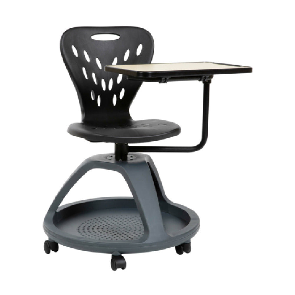 The Flash Furniture YU-YCX-019-BK-GG Laikyn Black Mobile Desk Chair with 360 Degree Tablet Rotation and Under Seat Storage Cubby is a versatile seating solution designed for dynamic work environments and educational settings. This chair features a unique 360-degree tablet rotation, providing flexibility and adaptability for a variety of tasks and learning activities. The inclusion of an under seat storage cubby offers convenient and accessible space for books, supplies, or personal items, enhancing the chair's functionality and efficiency in use. Its black finish adds a sleek, modern aesthetic, making it suitable for contemporary office spaces or classrooms. The chair is mobile, allowing easy movement across different areas, which is particularly beneficial in collaborative and interactive settings where mobility is key. This product is ideal for educational institutions, training centers, and creative workspaces that require adaptable and functional furniture solutions. The thoughtful design and practical features of the Flash Furniture YU-YCX-019-BK-GG Laikyn chair make it a valuable asset for any environment where flexibility and storage are essential.