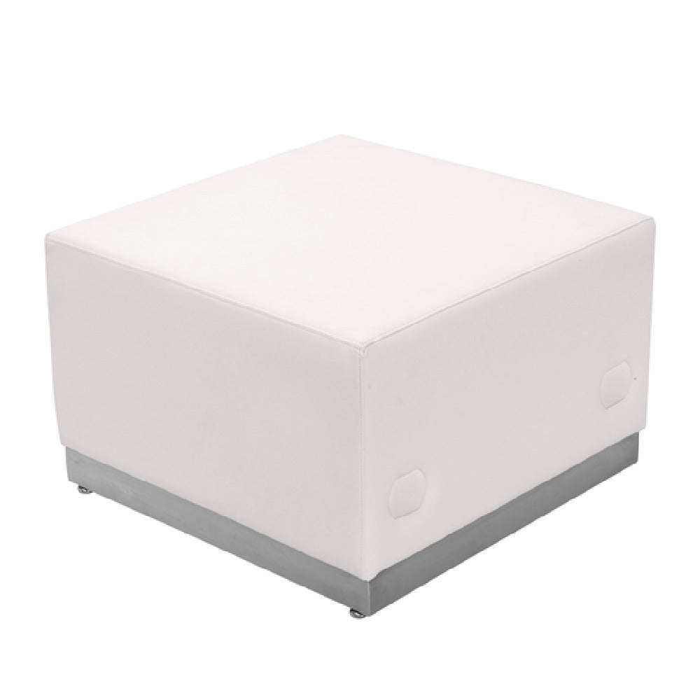 The Flash Furniture ZB-803-OTTOMAN-WH-GG Hercules Alon Series Ottoman is a versatile and durable seating solution that caters to various market segments within the furniture industry. Measuring 25-1/2" x 25-1/4"D x 16"H, this ottoman is designed with modularity in mind, allowing it to seamlessly integrate with other pieces in the Hercules Alon Series. Upholstered in LeatherSoft, a blend of leather and polyurethane, it offers both comfort and easy maintenance. The ottoman features line stitching throughout, adding a touch of elegance to its design. Safety is prioritized with CA117 fire retardant foam, ensuring compliance with fire safety standards. The product's brushed stainless steel base not only enhances its stability but also adds a modern aesthetic appeal. For added functionality, the ottoman includes locking bolts to securely connect it to chairs, making it ideal for modular seating arrangements. Adjustable floor glides are incorporated to protect flooring surfaces and facilitate easy movement. Available in a classic white finish, this ottoman is suitable for various environments, from residential living rooms to commercial spaces. Additionally, in-stock items are typically shipped within 24 hours, ensuring prompt delivery for time-sensitive projects.