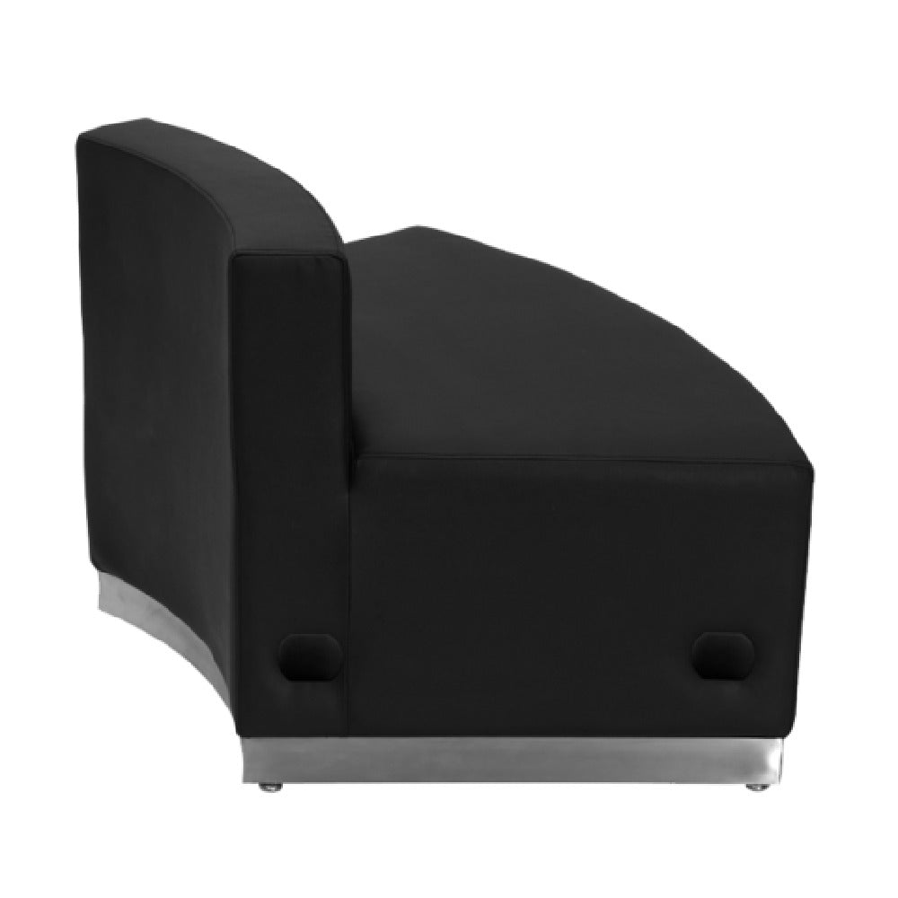 The Flash Furniture ZB-803-OUTSEAT-BK-GG Hercules Alon Series Convex Chair Modular is a versatile seating solution designed for modern spaces. With its LeatherSoft upholstery, this modular chair offers a combination of leather and polyurethane for added softness and durability. The taut seat and back are highlighted by meticulous line stitching throughout, providing both aesthetic appeal and structural resilience. Safety is a priority, as the chair features CA117 fire retardant foam, ensuring compliance with stringent fire safety standards. The ingenious design allows for seamless connectivity between chairs through a locking bolt system, making it ideal for creating customized seating arrangements. Its brushed stainless steel base adds a touch of elegance and stability, while adjustable floor glides ensure stable placement on various surfaces. This chair is available in classic black, and with a commitment to prompt service, in-stock items typically ship within 24 hours. The Flash Furniture ZB-803-OUTSEAT-BK-GG is a valuable addition to corporate settings, hospitality environments, and educational institutions, offering a unique blend of functionality, safety, and style tailored to meet the needs of diverse market segments.