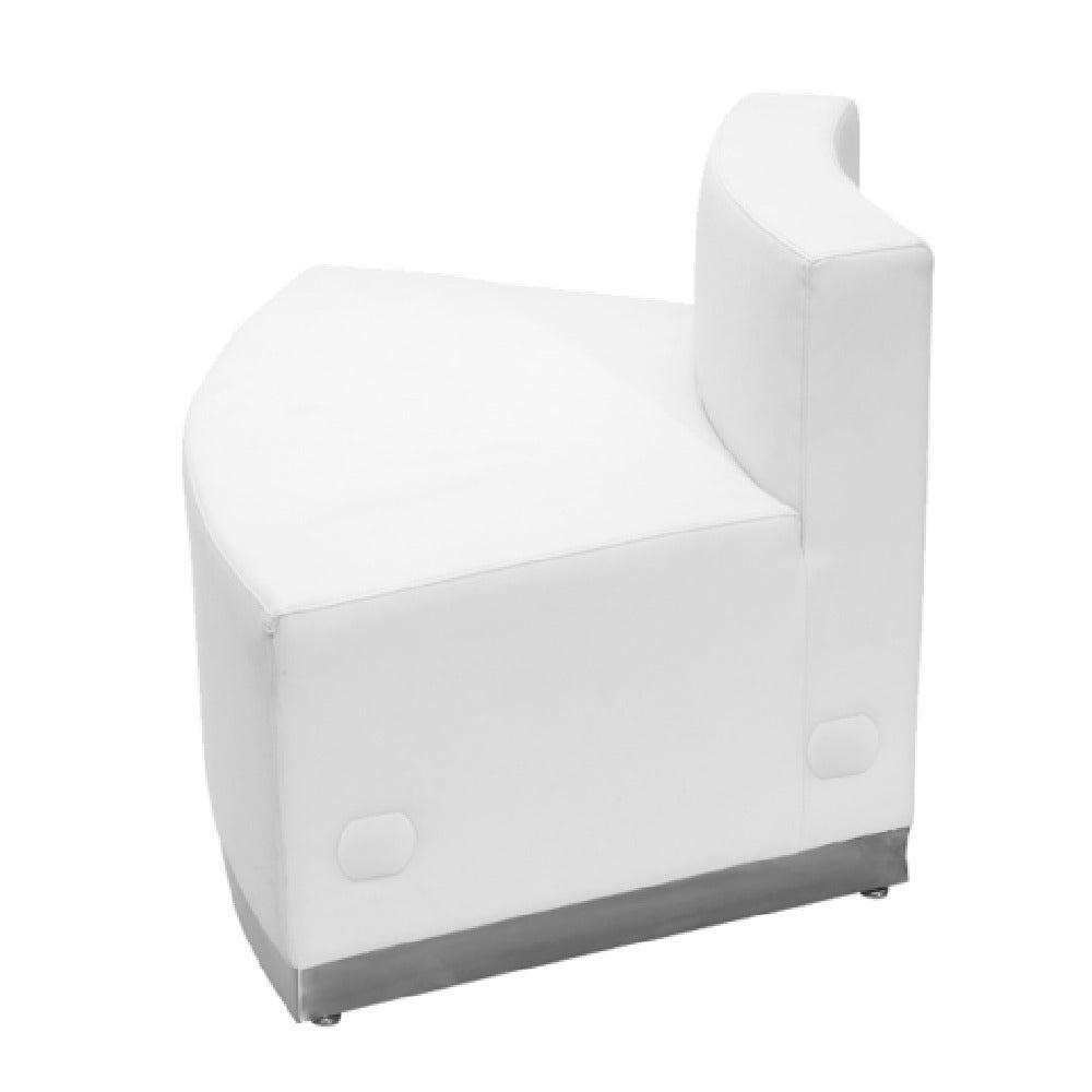 The Flash Furniture ZB-803-OUTSEAT-WH-GG Hercules Alon Series Convex Chair Modular is a meticulously designed seating solution, perfect for a range of environments from modern office spaces to contemporary hospitality venues. This modular chair features LeatherSoft upholstery, a blend of leather and polyurethane for added softness and durability, providing both comfort and style. The taut seat and back are enhanced with line stitching throughout, offering both aesthetic appeal and structural integrity. Safety and compliance are prioritized with CA117 fire retardant foam used in its construction. For practical modularity, it includes a locking bolt system that securely connects multiple chairs. The chair is supported by a brushed stainless steel base, delivering a sleek, modern look while ensuring sturdiness. Adjustable floor glides are incorporated to maintain stability on uneven surfaces and protect flooring from scratches. Available in white, this chair is often in stock and ready for quick shipment, typically within 24 hours. The Flash Furniture ZB-803-OUTSEAT-WH-GG is an ideal choice for industries seeking a blend of functionality, safety, and modern design, making it a versatile addition to any dynamic setting.
