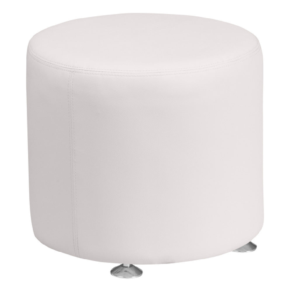 The Flash Furniture ZB-803-RD-18-WH-GG Hercules Alon Series Ottoman is a sophisticated piece designed to enhance any living space with its elegant aesthetic and robust features. Measuring 18 inches in diameter and standing 16-1/2 inches high, this round ottoman is an ideal addition for both residential and commercial environments. It is crafted with LeatherSoft upholstery, a blend of leather and polyurethane, providing a soft feel with enhanced durability. The ottoman’s design is accentuated by meticulous line stitching throughout, adding a touch of refined craftsmanship. Safety and quality are prioritized with the inclusion of CA117 fire retardant foam, ensuring compliance with fire safety standards. The ottoman rests on sturdy stainless steel feet equipped with floor glides, which facilitate easy movement and protect flooring surfaces. The sleek white finish of the ottoman complements a wide range of interior decor styles. An added benefit for customers is that in-stock items typically ship within 24 hours, ensuring prompt delivery. This ottoman is a versatile piece suitable for various market segments, from home use to professional office spaces, meeting the demand for comfortable and stylish seating solutions.