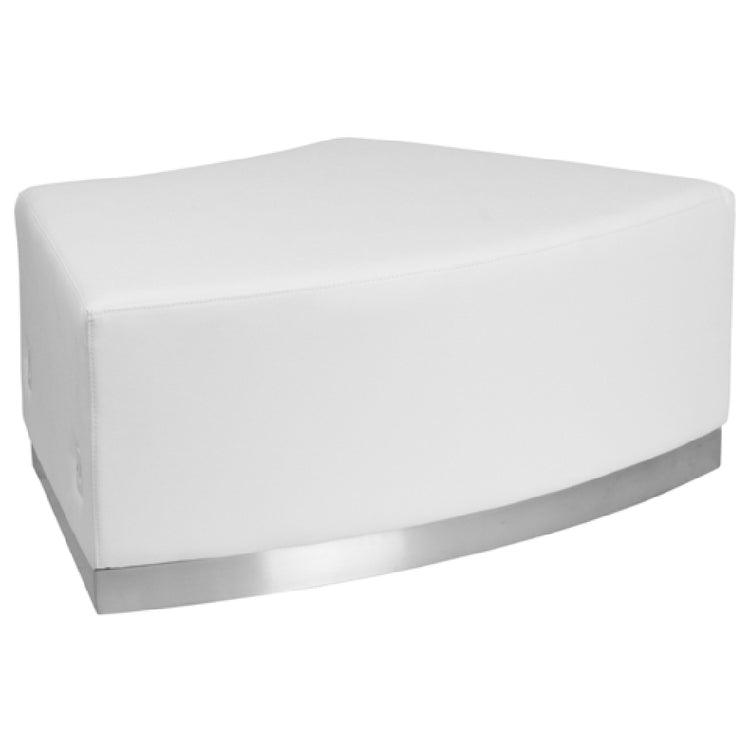 The Flash Furniture ZB-803-SEAT-WH-GG Hercules Alon Series Convex Chair is a modular seating solution designed to enhance both comfort and style in various settings. This chair features LeatherSoft upholstery, a blend of leather and polyurethane, providing an exceptionally soft and durable seating experience. The chair is backless, equipped with a taut seat and distinguished by line stitching throughout, ensuring a sleek and modern aesthetic. Safety and durability are prioritized with the incorporation of CA117 fire retardant foam, making it suitable for environments requiring stringent fire safety standards. The modular design is supported by a locking bolt system, allowing seamless connection between chairs for adaptable configurations. A brushed stainless steel base adds a sophisticated touch, while adjustable floor glides offer stability on uneven surfaces. Available in a pristine white color, this chair is ideal for contemporary office spaces, lounges, or waiting areas. In-stock items are ready for prompt shipment, typically dispatching within 24 hours, addressing the needs of businesses requiring quick and efficient furniture solutions. The Flash Furniture Hercules Alon Series Convex Chair combines functionality with modern aesthetics, catering to various markets including corporate, hospitality, and retail environments.