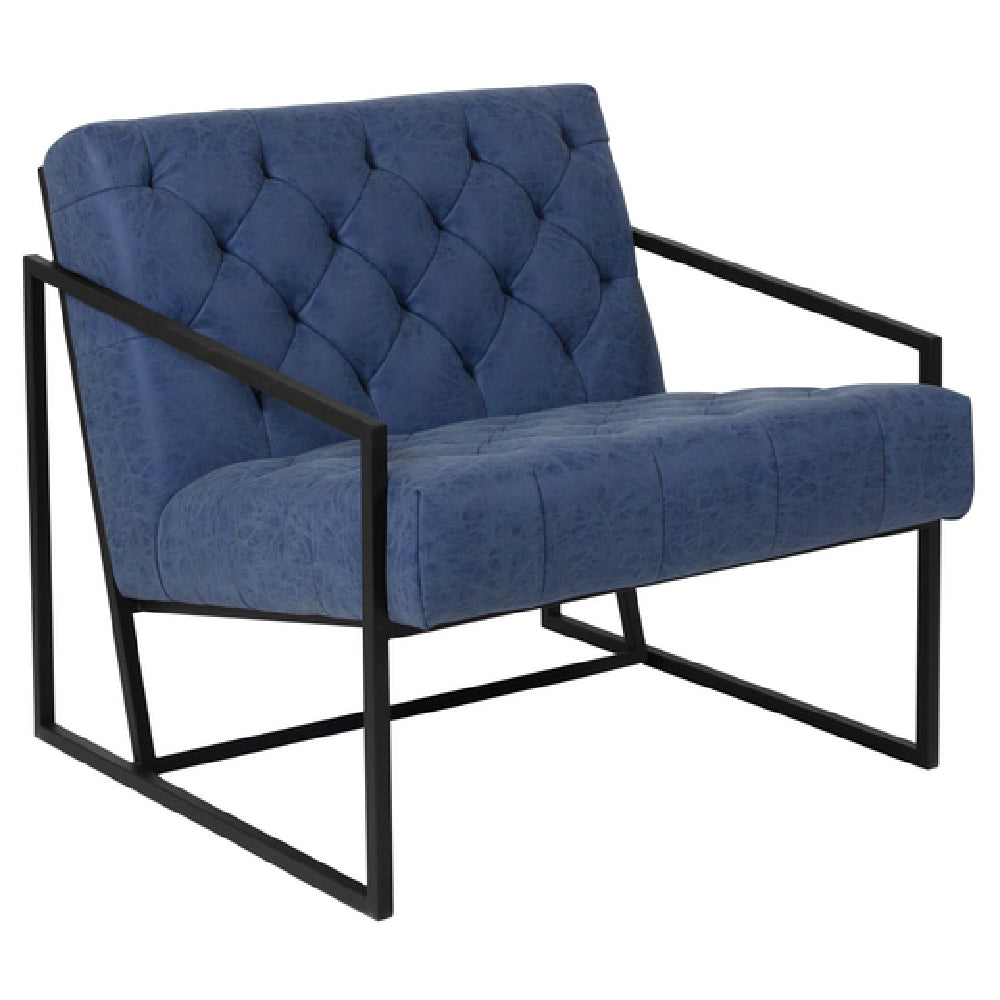 The Flash Furniture ZB-8522-BL-GG Hercules Madison Series Lounge Chair is an exceptional product designed with both comfort and style in mind. This lounge chair features a transitional design, seamlessly blending into various decor styles while providing a sophisticated seating solution. Its LeatherSoft upholstery combines leather and polyurethane for added softness and durability, making it ideal for frequent use in both home and professional settings. The chair's tufted seat and back enhance its aesthetic appeal while offering supportive comfort. Fixed seat and back cushions ensure a consistent seating experience, while the CA117 fire retardant feature adds a layer of safety, particularly useful in public spaces such as waiting rooms or offices. The slanted arms contribute to a relaxed seating posture, supported by a sturdy black powder-coated 1-inch tubular frame finish, which ensures longevity and stability. Plastic floor glides protect floors from scratches and make repositioning the chair effortless. Finished in an eye-catching retro blue, this lounge chair is a versatile addition to any interior space, whether it be a modern office lounge, a hotel lobby, or a chic living room. Typically, this product is in stock and ships within 24 hours, catering to both immediate and long-term seating needs.