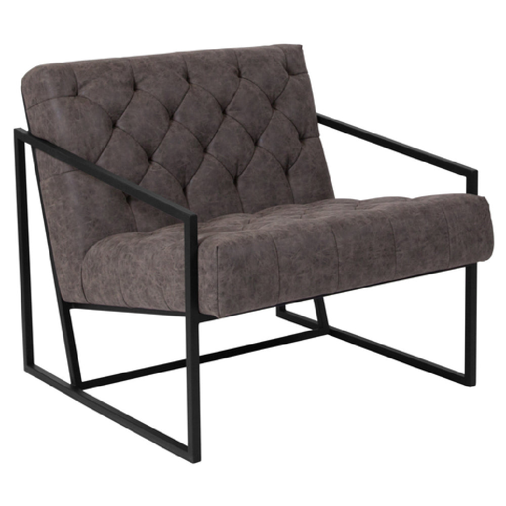 The Flash Furniture ZB-8522-GY-GG Hercules Madison Series Lounge Chair is a sophisticated seating solution designed with a transitional style that seamlessly integrates into various environments. This lounge chair is crafted with LeatherSoft upholstery, a blend of leather and polyurethane, offering both comfort and durability. The chair features a tufted seat and back, providing a classic and plush appearance while ensuring long-lasting support. With fixed seat and back cushions, it promises stability and ease of maintenance. Safety is prioritized with the inclusion of CA117 fire retardant materials, making it suitable for commercial settings. The chair's design is further enhanced by its slanted arms and a black powder-coated 1-inch tubular frame, ensuring a durable and stylish finish. Additionally, plastic floor glides protect flooring surfaces, making it an excellent choice for both residential and professional spaces. This product is readily available, typically shipping within 24 hours, positioning it as a reliable option for quick seating solutions. Its blend of aesthetic appeal and technical attributes makes the Flash Furniture ZB-8522-GY-GG a versatile choice for different market segments, from office spaces to hospitality venues.