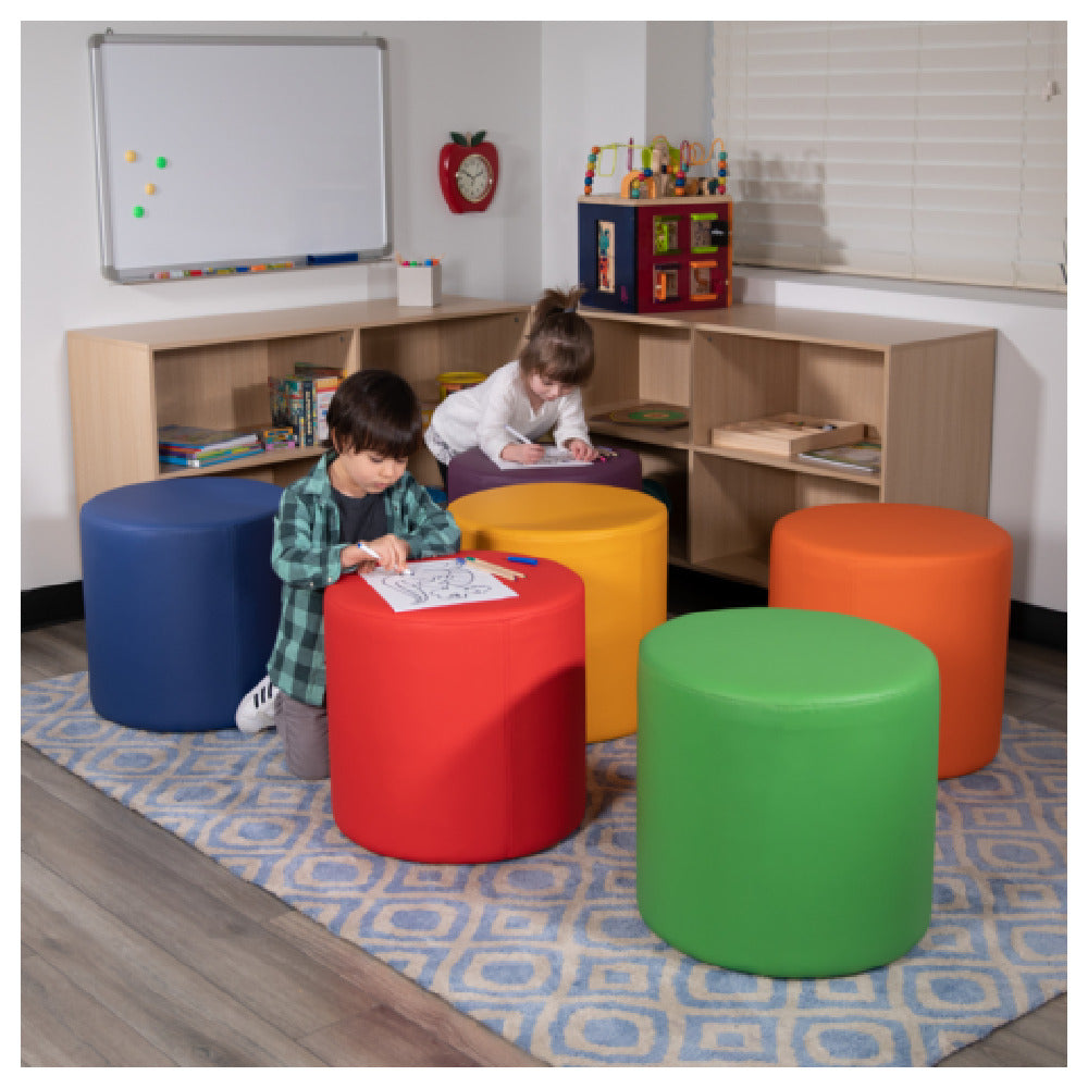 The Flash Furniture ZB-FT-045R-18-RED-GG Nicholas Soft Seating Flexible Circle is designed with an 18-inch seat height, tailored for use in classrooms and common spaces. Its vibrant red color adds a lively touch to any environment, making it an inviting seating option for educational and communal settings. This piece of soft seating is particularly advantageous for educational institutions aiming to foster a collaborative and flexible learning environment. Its circular design promotes group interactions and discussions, making it a suitable choice for progressive teaching methods that encourage student engagement. Additionally, the durable construction of the seating ensures longevity and the ability to withstand regular use in high-traffic areas such as common spaces in schools or libraries. The Flash Furniture Nicholas Soft Seating is a versatile addition to any space, providing a practical yet stylish seating solution that meets the needs of diverse user groups. Its thoughtful design and functional features make it an excellent choice for enhancing the utility and aesthetic of shared environments.