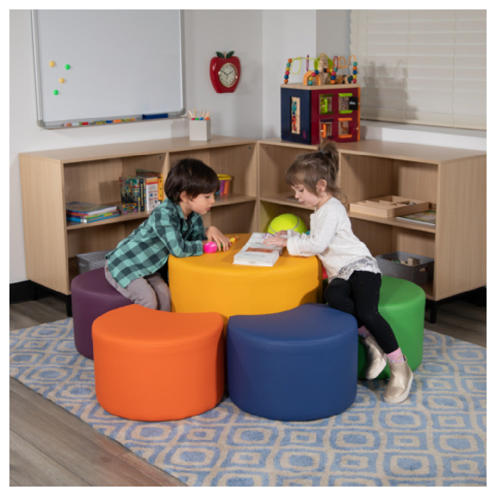 The Flash Furniture ZB-FT-060R-18-YEL-GG Nicholas Large Soft Seating Flexible Circle for Classrooms and Common Spaces - Yellow is designed to enhance various educational and communal environments. Featuring a substantial size of 18 inches in height and a 24-inch diameter, this seating solution provides ample space and comfort for multiple users. Its bright yellow hue adds a vibrant touch to any setting, making it an appealing choice for schools, libraries, and community centers. The flexible circle design allows for versatile seating arrangements, catering to both individual and group activities. Constructed with soft materials, it ensures a comfortable sitting experience that supports prolonged use. This product's adaptability makes it ideal for dynamic learning environments where space configuration can change frequently. The Flash Furniture Nicholas Large Soft Seating is a practical option for educators and facility managers seeking durable and stylish seating that encourages interaction and fosters a welcoming atmosphere. Its thoughtful design and reliable construction offer a unique value proposition for various market segments within the educational and communal space industry.