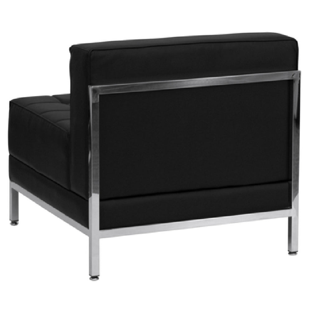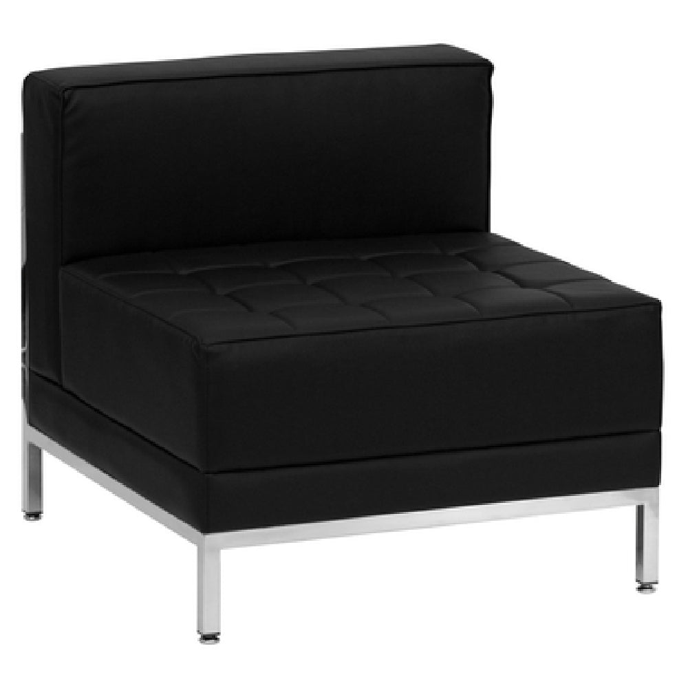 The Flash Furniture ZB-IMAG-MIDDLE-GG Hercules Imagination Series Middle Chair Modular is a sophisticated seating solution designed for versatility and comfort across various market segments, such as corporate offices, hospitality venues, and modern living spaces. This chair features LeatherSoft upholstery, combining the rich texture of leather with the durability of polyurethane, ensuring a luxurious and long-lasting finish. Its armless design provides flexibility in configuration, making it ideal for modular setups in dynamic environments. The smooth back and tufted seat offer a sleek aesthetic, while the fixed seat and back cushion guarantee consistent support and comfort. Safety is prioritized with CA117 fire retardant foam, providing peace of mind in high-traffic areas. A stainless steel accent bar enhances the chair's contemporary look, complemented by integrated stainless steel legs for added stability and style. This chair is available in black and requires assembly. Customers can expect efficient service with in-stock items typically shipping within 24 hours, ensuring quick delivery for time-sensitive projects. The Flash Furniture ZB-IMAG-MIDDLE-GG is a practical choice for those seeking a blend of functionality, modern design, and safety in seating solutions.