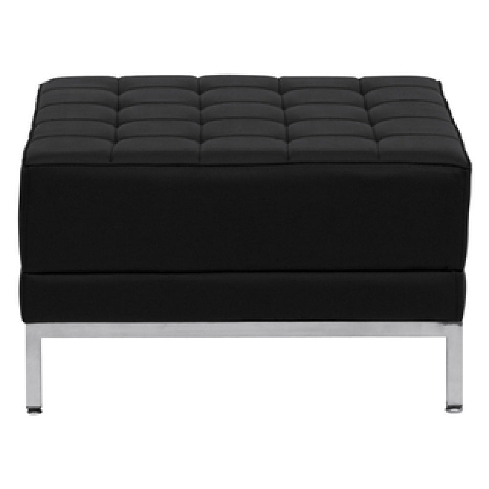 The Flash Furniture ZB-IMAG-OTTOMAN-GG Hercules Imagination Series Ottoman is a versatile piece designed for various settings, measuring 28"W x 28"D x 17"H. This modular ottoman features LeatherSoft upholstery, a blend of leather and polyurethane, providing a soft, durable surface. The tufted upholstery adds a touch of sophistication while ensuring comfort. With CA117 fire retardant foam, this ottoman meets safety standards, making it suitable for high-traffic areas in commercial spaces. Supporting its modern aesthetic are integrated stainless steel legs, offering robust support and a contemporary look. Available in a classic black finish, this ottoman seamlessly fits into diverse environments, from corporate lounges to residential living spaces. Assembly is required for this product, allowing for easy setup and adaptability to individual preferences. Furthermore, in-stock items are typically shipped within 24 hours, ensuring a quick delivery process. The Flash Furniture ZB-IMAG-OTTOMAN-GG Hercules Imagination Series Ottoman is an excellent choice for those seeking a stylish, functional, and safe seating solution, ideal for various market segments requiring adaptable and aesthetically pleasing furniture.