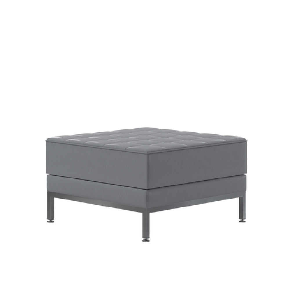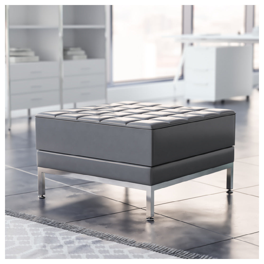 The Flash Furniture ZB-IMAG-OTTOMAN-GY-GG Hercules Imagination Series Ottoman 28"W X 28"D X 17"H is a versatile piece designed for both residential and commercial spaces, aligning with contemporary decor needs. This modular ottoman features a LeatherSoft upholstery that combines leather and polyurethane for added softness and durability, making it an ideal choice for high-traffic areas. Its tufted upholstery adds a touch of elegance while maintaining a functional design. The ottoman is equipped with CA117 fire retardant foam, offering an added layer of safety, essential for environments like hotels, lobbies, or office lounges. Integrated stainless steel legs provide sturdy support, ensuring longevity and stability. This piece, available in an appealing gray color, requires assembly but promises a quick setup. It often ships within 24 hours when in stock, catering to urgent furnishing needs. The Flash Furniture ottoman is a practical solution for diverse market segments, including corporate offices seeking stylish yet functional furniture, hospitality industries requiring durable and safe options, and homeowners desiring modern aesthetics combined with comfort. Its dimensions and features cater to a broad spectrum of uses, making it a valuable addition to any setting.