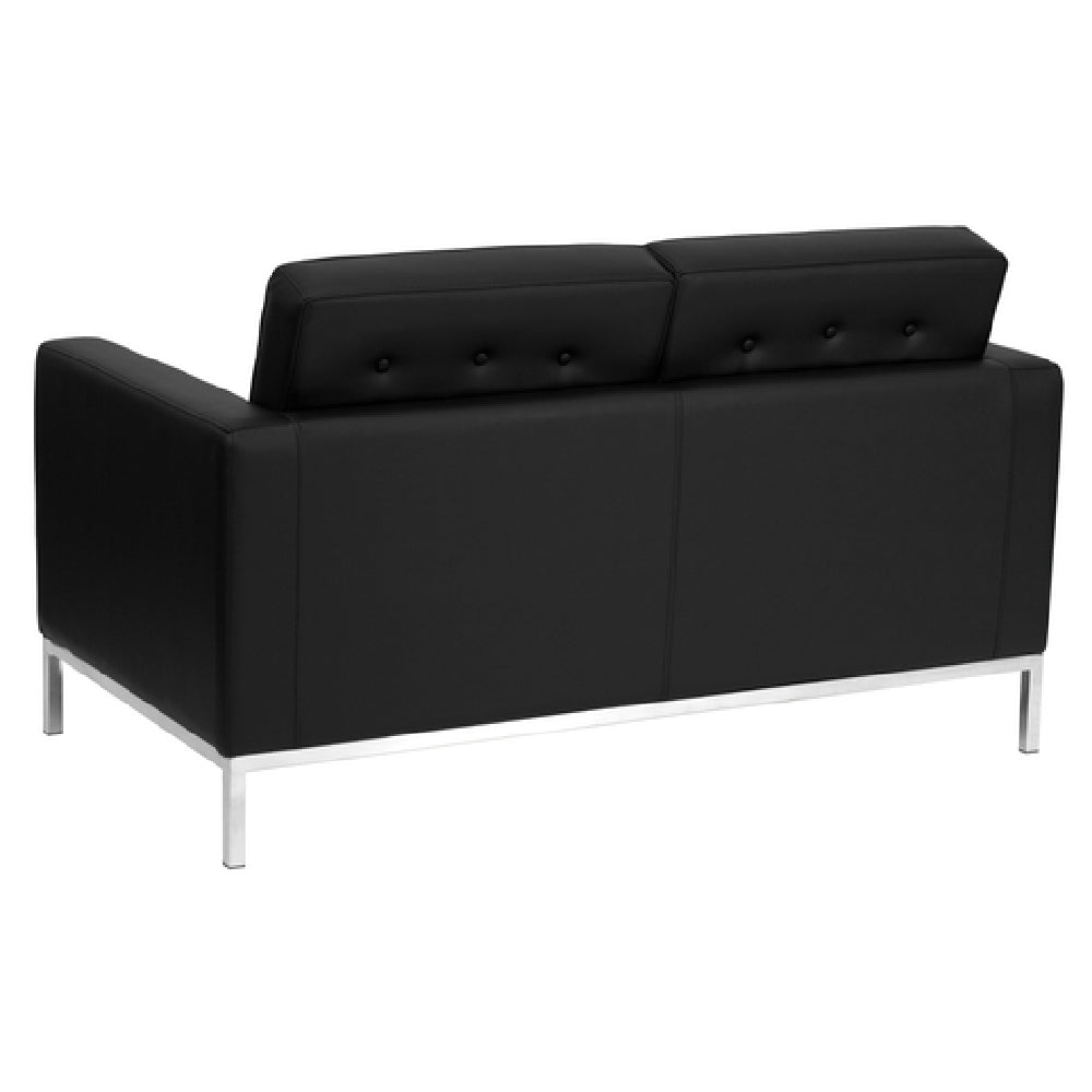 The Flash Furniture ZB-LACEY-831-2-LS-BK-GG Hercules Lacey Series Loveseat is a versatile seating solution engineered for both residential and commercial spaces. Measuring 57"W x 31"D x 32"H, this loveseat is compact yet offers ample seating space, fitting seamlessly into various environments. It features LeatherSoft upholstery, a blend of leather and polyurethane, offering the rich look and feel of leather with enhanced durability and softness. The design includes a button-tufted seat and back, which not only enhance its aesthetic appeal but also provide a comfortable seating experience. This loveseat comes with fixed seat and back cushions, ensuring a sleek profile and consistent comfort. Safety is prioritized with CA117 fire retardant foam, making it suitable for public and high-traffic areas. The accent frame coupled with integrated stainless steel legs adds a touch of modern elegance and stability to the piece. Available in classic black, this loveseat requires assembly upon delivery. For businesses or homes requiring quick furnishing solutions, in-stock items typically ship within 24 hours, ensuring prompt delivery. This loveseat is ideal for diverse markets, from corporate offices to hospitality venues, offering a blend of style, comfort, and safety.