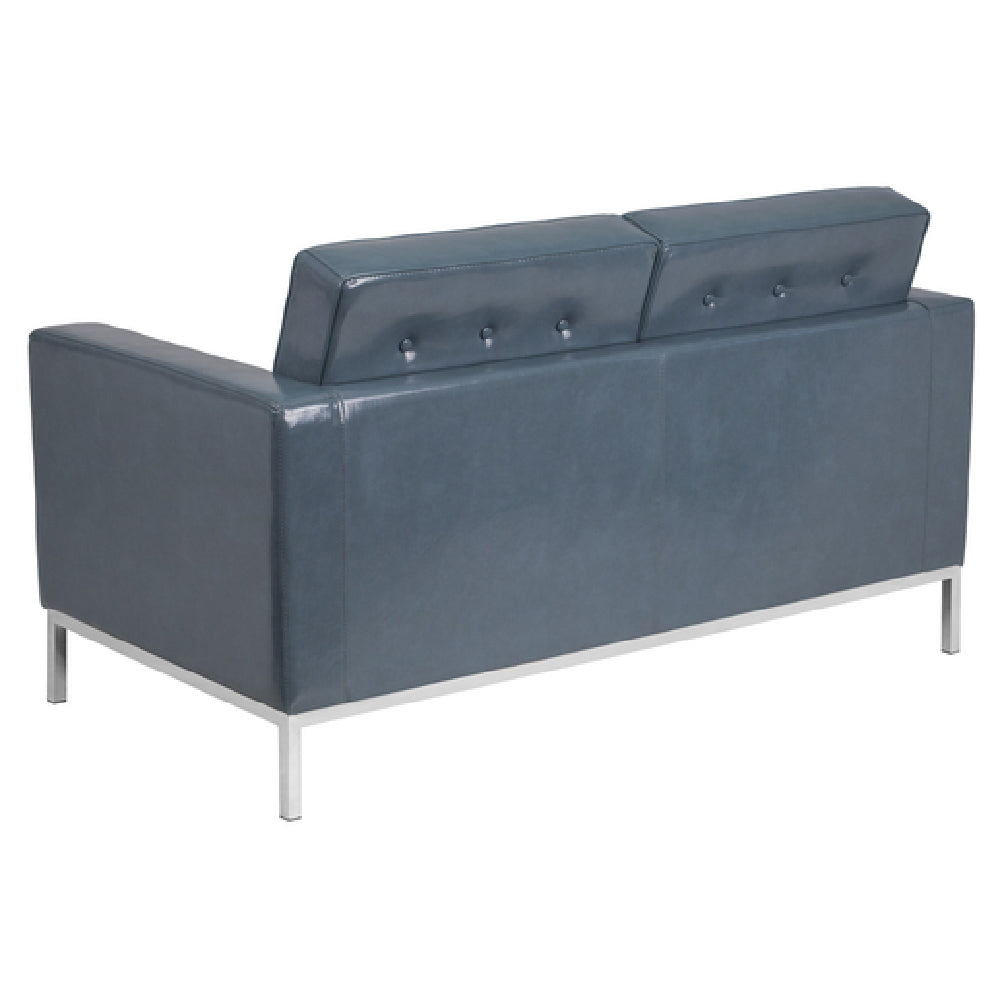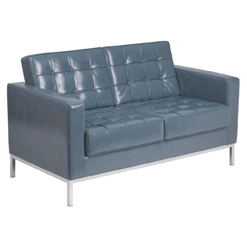 The Flash Furniture ZB-LACEY-831-2-LS-GY-GG Hercules Lacey Series Loveseat is meticulously designed to enhance any modern living or office space. With dimensions of 57"W x 31"D x 32"H, it provides a comfortable seating area without overwhelming your room. Upholstered in LeatherSoft, a blend of leather and polyurethane, it offers both durability and a soft touch. The loveseat features button tufted seats and backs, adding a classic touch to its contemporary design. Fixed seat and back cushions ensure consistent support and a neat appearance. It is equipped with CA117 fire retardant foam, aligning with safety standards for home and commercial spaces. The accent frame and integrated stainless steel legs not only provide a robust support structure but also contribute to its sleek and stylish look. Finished in a versatile gray, this loveseat complements a wide range of interior décors. Although assembly is required, items in stock typically ship within 24 hours, ensuring a prompt addition to your space. This loveseat is suitable for various market segments, including residential users seeking a stylish yet practical seating solution and businesses looking to furnish their office spaces with reliable and aesthetically pleasing furniture.