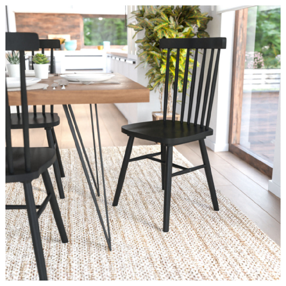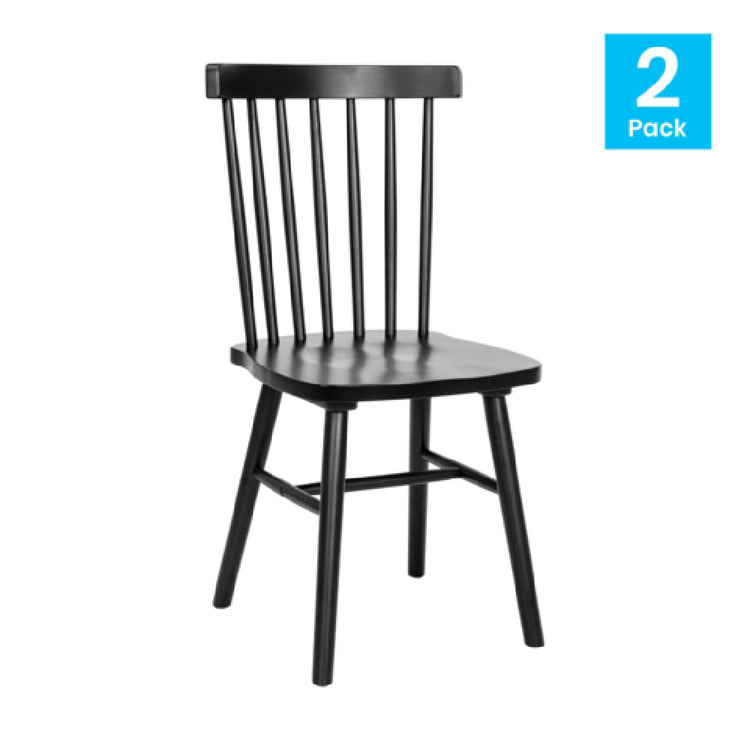 The Flash Furniture ZH-8101WR-BK-2-GG Ingrid Dining Chair is a remarkable piece of furniture, known for its impressive 600 lb. weight capacity. Crafted from solid wood, this chair ensures durability and longevity, catering to a wide range of customers from residential to commercial markets. Its design features a classic spindle back and a high gloss painted finish, providing both aesthetic appeal and protection against wear. Each leg is fitted with felt pads, making it suitable for use on various floor types without causing damage. Available in a sleek black color, this set of two chairs arrives fully assembled, offering convenience and immediate usability. These characteristics make the Ingrid Dining Chair not only an ideal choice for dining rooms but also a practical seating option for cafes, restaurants, and other hospitality venues. Its robust construction and timeless design can complement a variety of interior styles while accommodating diverse needs, especially for those requiring high weight capacity seating solutions.