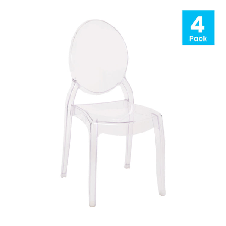 The Flash Furniture ZH-GHOST-OVR-4-GG Revna Set of 4 Transparent Crystal Extra Wide Resin 700 LB. Weight Capacity Banquet & Event Ghost Chairs-Indoor/Outdoor Use is an exquisitely designed seating option that combines both elegance and durability. Crafted from a transparent crystal resin, these chairs present a modern and sophisticated aesthetic, making them a perfect fit for a wide range of venues and events. Each chair in this set of four boasts an extra wide design, ensuring comfort and support, and can accommodate up to 700 pounds, highlighting its robust construction. Designed for versatility, these chairs are suitable for both indoor and outdoor environments, catering to a variety of event settings including corporate functions, weddings, and outdoor gatherings. The transparent nature of the resin material not only enhances the visual appeal of these chairs but also allows them to seamlessly blend with any decor style, adding a touch of modernity and elegance. These ghost chairs are especially advantageous for event planners, hospitality venues, and homeowners seeking a stylish yet practical seating solution that maintains high standards of resilience and aesthetic appeal.