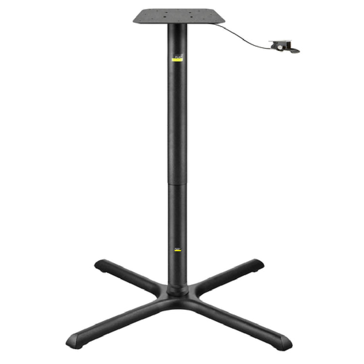 The FLAT Tech CT2066 KX36 Table Base Adjustable Height 36" Cross Base is a versatile and highly functional table base designed to meet the diverse needs of various market segments, including hospitality and commercial dining. Featuring a 36" cross base, this table base is equipped with a 3" diameter pneumatic column for adjustable height capabilities, allowing for customizable dining experiences. The 12" x 12" top plate provides robust support for tabletops up to a maximum size of 36" square or round, ensuring compatibility with a wide range of tabletop designs. One of its standout features is the hydraulic PAD stabilization technology, which offers self-stabilizing capabilities, making it ideal for environments where maintaining a level surface is critical. Crafted from durable cast iron with a textured finish, this table base not only ensures longevity but also adds an aesthetic appeal to any setting. The FLAT Tech CT2066 ships in three boxes, facilitating easy transportation and assembly. This product's unique combination of adjustable height, stability, and durability positions it as a valuable asset for businesses seeking reliable and adaptable table solutions, accommodating the dynamic demands of the hospitality industry.
