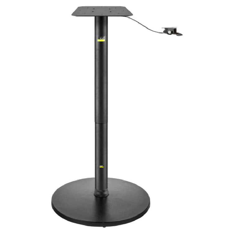 The FLAT Tech CT3026 UR22 Table Base Adjustable Height 22" Round Pedestal Base is an innovative furniture solution designed to enhance stability and style in various settings. This table base features a 22-inch round pedestal base and a 3-inch diameter pneumatic column, allowing for adjustable height to meet diverse user needs. Its top plate measures 12 inches by 12 inches, providing ample support for tabletops up to 30 inches in diameter or 26 inches square. A key feature of this product is its hydraulic PAD stabilization technology, which ensures a stable and wobble-free surface, making it ideal for restaurants, cafes, and other dining environments. Constructed from durable cast iron, the table base is finished with a textured surface, enhancing its aesthetic appeal and resistance to wear. The product is shipped in three boxes, facilitating easy transportation and assembly. The FLAT Tech CT3026 is a versatile and reliable choice for businesses seeking to optimize space with adjustable and stable table solutions, suitable for venues ranging from casual dining establishments to more sophisticated settings where stability and adjustability are paramount.