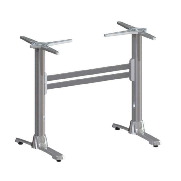 The FLAT Tech CT4310 ST22 Table Base Dining Height 22" Double End Base is engineered for stability and versatility in both indoor and outdoor settings. This table base features a dining height design, complemented by a support bar and a 2-5/9" diameter column. The robust 14" x 14" mounting plate ensures secure attachment, making it suitable for a variety of tabletop sizes, with a maximum capacity of 36" x 55" rectangular tabletops. A standout feature of this table base is its hydraulic PAD stabilization technology, which provides superior balance and prevents wobbling, enhancing the dining experience across different environments. Constructed from aluminum with a polished finish, the CT4310 ST22 is designed to withstand diverse conditions, offering durability and aesthetic appeal. It is shipped in three boxes for efficient transportation. This table base is an ideal solution for restaurants, cafes, and hospitality venues striving for a blend of style, functionality, and reliability in their furniture selection.