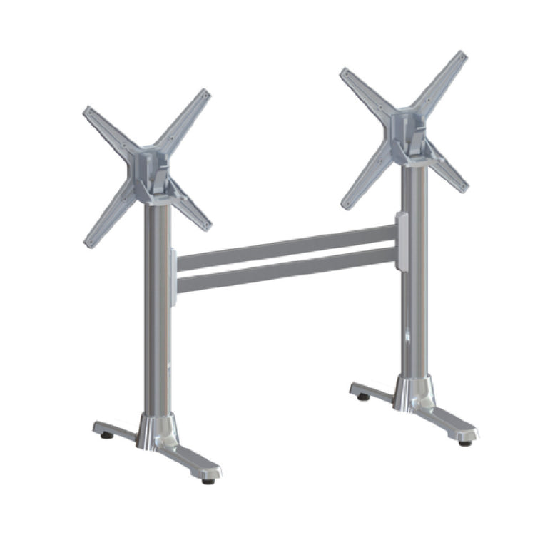 The FLAT Tech CT4313 ST22 Table Base Dining Height 22" Double End Base is a meticulously engineered solution designed to meet the diverse needs of both indoor and outdoor dining settings. With a dining height structure, this table base features a 22-inch double end base and includes a supportive bar, ensuring stability and durability. The design incorporates a 2-5/9-inch diameter column coupled with a 14-inch by 14-inch flip top mounting plate, making it stackable and space-efficient. One of the standout features of this table base is its innovative hydraulic PAD stabilization technology, which ensures a stable dining experience on uneven surfaces. Crafted from aluminum with a polished finish, it combines both aesthetic appeal and functional durability. The maximum tabletop size it can support is 32 inches by 47 inches rectangular, accommodating a broad range of dining scenarios. This product is versatile in its application, shipping in four boxes for ease of transport and assembly, and is a reliable choice for those seeking quality and functionality in dining furniture solutions across various market segments, from hospitality to residential dining spaces.