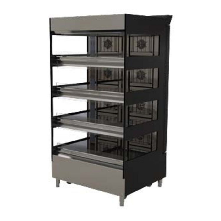 Flexeserve, 4T-1000R, (FZ10D4S61) Flexeserve Heated Display Cabinet, floor model, rear feed, square, 39-3/10"W x 34-4/5"D x 75-1/10"H, (4) tiers, convection air system, stainless steel shelf edge, mirror polished back pane, fan guards., LED lighting to each shelf, self-service, (4) castors, Nema 6-30P, 208v/60,1-ph, 28.8A, CE, cETLus, ETL, UKCA