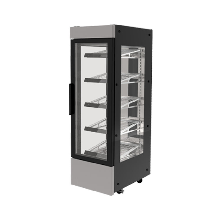 Flexeserve, HUB-600-RH, (FH-60R-US) Flexeserve Hub, floor model, square, 22"W x 34"D x 73-3/5"H, (5) adjustable stainless steel shelves, stainless steel canopy & base panel, magnetic, mirror polished back panel, double glazed, right hand self closing doors, standard ticket strip, smart LED, (4) castors, Nema 6-15P, 208v/60,1-ph, 7.2A, CE, cETLus, ETL, UKCA