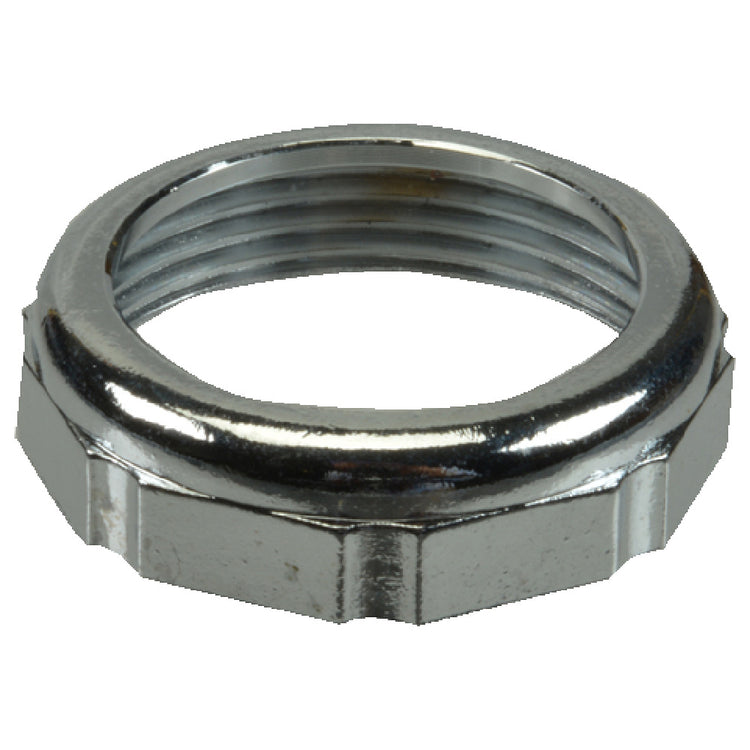 The Franklin Machine Products 110-1284 Coupling Nut is a precision-engineered component with distinct technical specifications catering to various industrial applications. With an outer diameter of 1-7/16 inches and an inner diameter of 1-1/4 inches, this coupling nut ensures a secure and stable connection in mechanical assemblies. Crafted from high-quality brass, it boasts excellent durability and resistance to corrosion, while its chrome-plated finish enhances both longevity and aesthetic appeal. Manufactured by T&S Brass, a reputable name in the industry, this coupling nut is designed to meet rigorous standards, making it a reliable choice for professionals in plumbing, engineering, and equipment manufacturing sectors. Its precise dimensions and robust construction make it suitable for use in high-pressure environments, providing a dependable solution for various coupling needs. The FMP 110-1284 is ideal for use in applications where reliable coupling and ease of installation are paramount, delivering exceptional performance in both commercial and industrial settings.