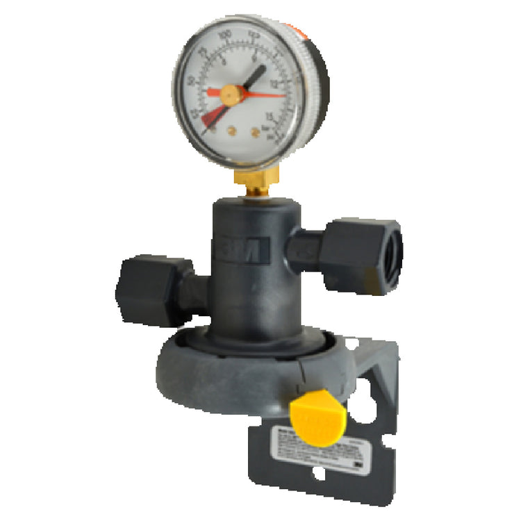 The Franklin Machine Products 117-1453 Water Filter Cartridge System Cuno® Single is a compact and efficient filtration unit designed for precision and reliability in water filtration. With dimensions of 8-1/4 inches in height, 4-3/8 inches in width, and an outer diameter of 4-1/2 inches, this system is engineered for space-conscious installations. It features a 1/2-inch inlet and outlet, allowing for seamless integration into existing water lines. Operating at a flow rate of 5 gallons per minute, it ensures a steady and sufficient water supply for various applications. The system is constructed from durable gray plastic, designed to withstand temperature ranges from 40°F to 100°F, making it versatile for different environmental conditions. Included with this system is a gauge, identified as model ICE190-S, which supports the monitoring of system performance. This water filter cartridge system is ideal for both commercial and residential markets where water quality is critical, providing businesses and homes with clean, filtered water effectively. Its durable construction and efficient performance make it a valuable asset in industries ranging from food service to residential installations, ensuring high-quality water is always at the ready.