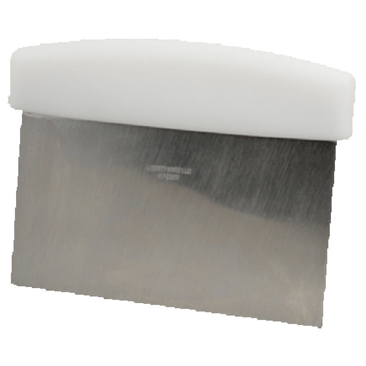 The Franklin Machine Products 137-1427 Dough Scraper is a compact 6" x 3" kitchen tool crafted from high-quality stainless steel, making it an essential asset for bakeries, pizzerias, and professional kitchens seeking efficiency and durability. This dough scraper is designed with a sleek white plastic handle that ensures a comfortable and firm grip, allowing for precise and effortless dough manipulation. The stainless steel blade not only provides strength and longevity but also maintains its sharpness over time, making it ideal for various dough-related tasks such as cutting, scraping, and lifting. The balanced combination of size and material makes the Franklin Machine Products 137-1427 Dough Scraper particularly suitable for environments that demand exacting standards and high-volume operations. Its design facilitates easy cleaning and maintenance, crucial for maintaining hygiene in food preparation settings. Whether you are a professional chef in a commercial kitchen or a dedicated home baker, this dough scraper's efficient design and reliable performance provide unmatched value, distinguishing it as a vital tool in culinary operations.