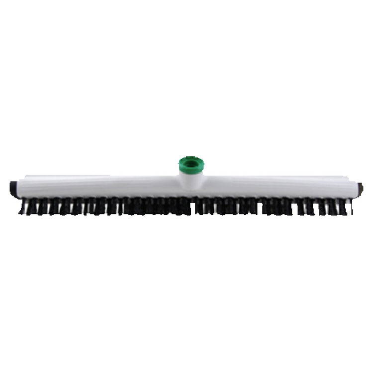 The Franklin Machine Products 142-1449 Unger® Squeegee With Brush is an 18-inch long tool that uniquely combines efficiency and versatility with its dual-function design. This squeegee is engineered with two rows of soft "moss" rubber, providing a gentle yet effective cleaning action ideal for surfaces requiring delicate handling. Complementing its rubber component are two rows of heavy-duty bristles, perfect for tackling tougher debris or scrubbing tasks, making this tool suitable for a wide range of cleaning applications across various industries, from automotive to hospitality. Enhanced with a splash guard, it minimizes unwanted splatter, ensuring a cleaner operation. The inclusion of female threads allows for easy attachment to compatible handles, offering flexibility and ease of use for professionals who demand both performance and adaptability in their cleaning equipment. The thoughtful combination of materials and design elements makes the Franklin Machine Products 142-1449 Unger® Squeegee With Brush a valuable asset for users seeking an all-in-one solution for maintaining cleanliness in diverse environments. Its robust construction and multifunctionality highlight its role as a reliable tool designed to meet the rigorous demands of professional cleaning tasks.