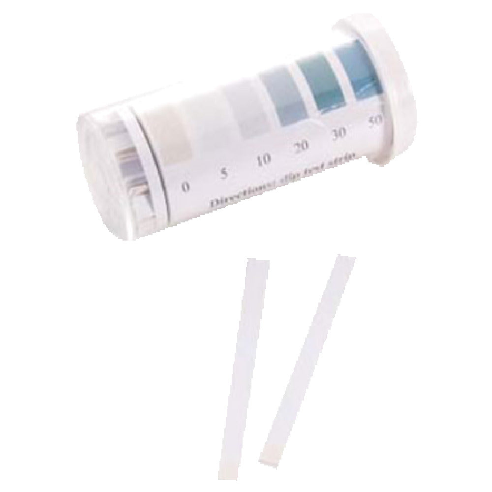 The Franklin Machine Products 142-1555 Peracetic Acid Strips Low 0-50 PPM are specialized testing strips designed for precise measurement of peracetic acid levels, ranging from 0 to 50 parts per million (PPM). Each pack contains 100 strips, providing ample supply for frequent testing. These strips cater to various segments within the industry, including food safety, water treatment, and healthcare, where maintaining specific peracetic acid concentrations is crucial for sanitation and sterilization processes. The inclusion of a color-coded test chart enhances user experience by allowing quick and accurate visual interpretation of test results, ensuring compliance with safety standards. By offering a low-range detection capability, these strips are particularly valuable for environments where precise control over low concentrations of peracetic acid is required. The compact packaging and ease of use make them an accessible tool for professionals seeking reliable and efficient monitoring solutions. This product stands out for its specificity and accuracy, making it an indispensable resource for industries that prioritize stringent hygiene and safety measures, supporting their commitment to high-quality standards in everyday operations.