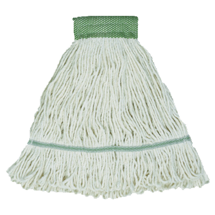 The Franklin Machine Products 159-1017 Mop Head Loop End 5" Headband is engineered for durability and efficiency, making it a valuable tool for various cleaning applications. This mop head features a loop end design, which enhances its cleaning performance by minimizing linting and fraying, thereby extending its lifespan. The 5-inch headband is a critical component, providing a secure attachment to mop handles, suitable for heavy-duty cleaning tasks in both commercial and industrial settings. Constructed from a 4-ply blend of 50% cotton and 50% rayon, this mop head strikes an optimal balance between absorbency and durability. The cotton element offers excellent liquid retention, making it ideal for spill cleanup and floor maintenance, while the rayon adds strength and quick-drying properties, essential for maintaining hygiene standards in high-traffic areas. This mop head's composition ensures it is lightweight yet robust, making it user-friendly for janitorial staff who require reliable cleaning equipment. As a versatile cleaning accessory, the Franklin Machine Products 159-1017 Mop Head is designed to meet the needs of diverse market segments, including hospitality, healthcare, and institutional facilities, where cleaning efficiency and product longevity are paramount.