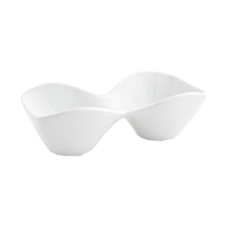 FOH®, BBO022WHP22, Promotional pricing may be available! Contact your FOH® sales representative for details! Duo Pod Server, 2-compartment, 4 oz. per bowl, 8" x 4" x 2-1/2" overall, porcelain (Packed By: 6 Each Per Case)