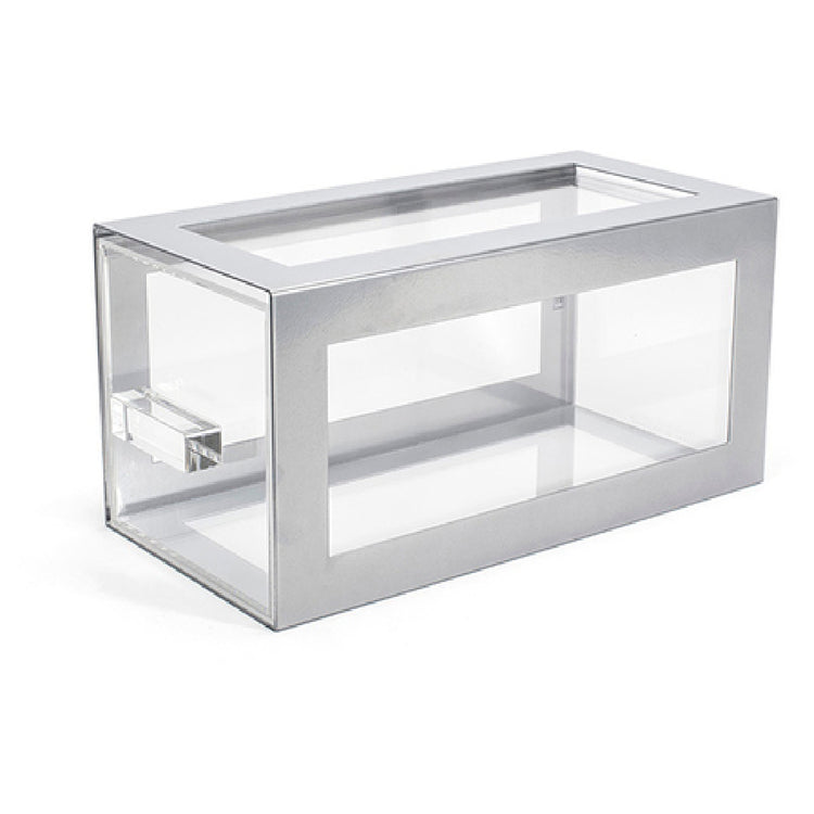 FOH®, BHO123BCI20, Metal Housing/Drawer Set - Silver, includes one BRI014BCI28 13" Metal Risers - Set of 2 - Silver, two BHO079CLT20 -DR Acrylic Display Drawer, and two BHO107CLT88 Flat Silicone Strip - Bag of 2 [Kitted] (Packed By: 2 Each Per Case)