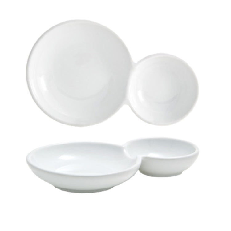 FOH®, DBO122WHP23, Promotional pricing may be available! Contact your FOH® sales representative for details! Harmony Bento™ Duo Plate, 10 oz., 6-1/2" x 4" x 1", 2-compartments, porcelain (Packed By: 12 Each Per Case)