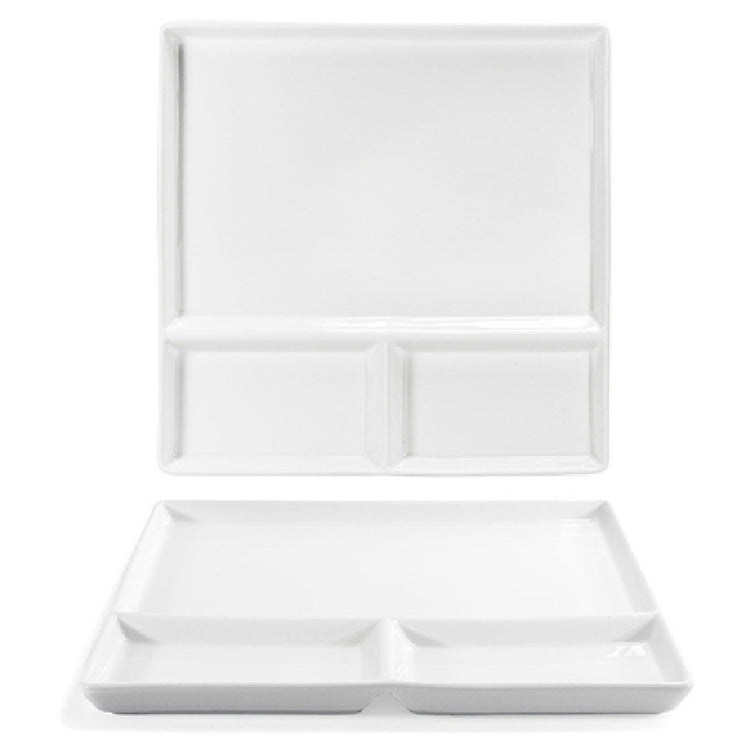 FOH®, DDP072WHP21, Promotional pricing may be available! Contact your FOH® sales representative for details! Mod® Divided Plate, 3-compartments, 10-3/4" x 10-3/4" x 1/2"H, square, porcelain, white (Packed By: 4 Each Per Case)