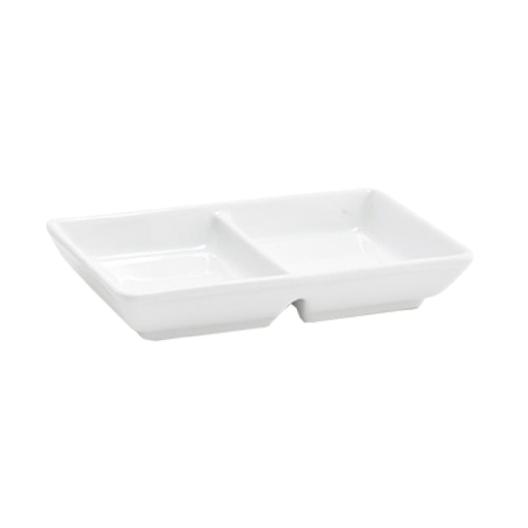 FOH®, DSD021WHP23, Divided Dish, 2-compartment, 1 oz. per bowl, 4-3/4" x 2-3/4", stackable, porcelain (Packed By: 12 Each Per Case)