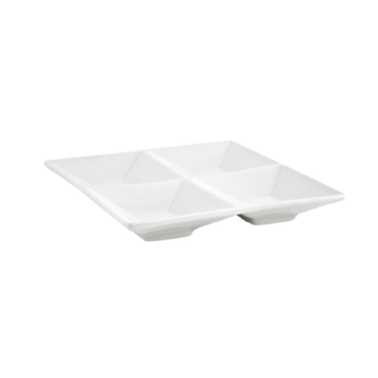 FOH®, DSD033WHP22, Kyoto™ Divided Dish, 4 compartment, 1 oz. per bowl, 6" x 6", square, linear design, porcelain (Packed By: 6 Each Per Case)