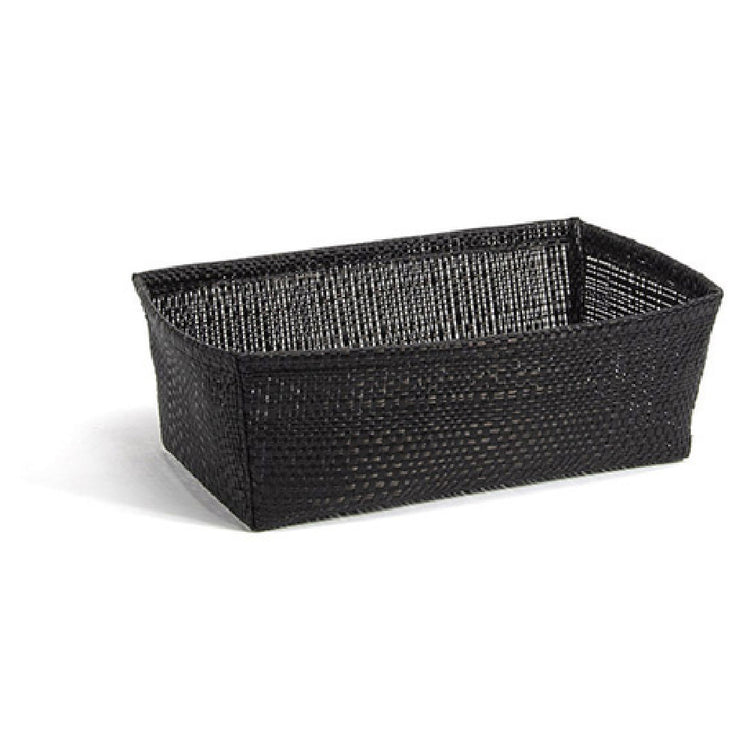 FOH®, RBA004BKV22, Promotional pricing may be available! Contact your FOH® sales representative for details! Metroweave® Basket, 8-1/2"L x 5"W x 3"H, rectangular, stain/fade/bacteria/heat resistant (up to 300°F), woven vinyl, random weave, black (Packed By: 6 Each Per Case)