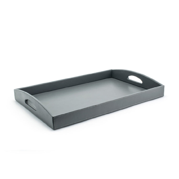 FOH®, RRT001GYL10, Tray, 19"W x 13"D x 2.5"H, With Handle, Rectangular, Faux Leather, Smoke, room360® - London (Packed By: 2 Each Per Case)